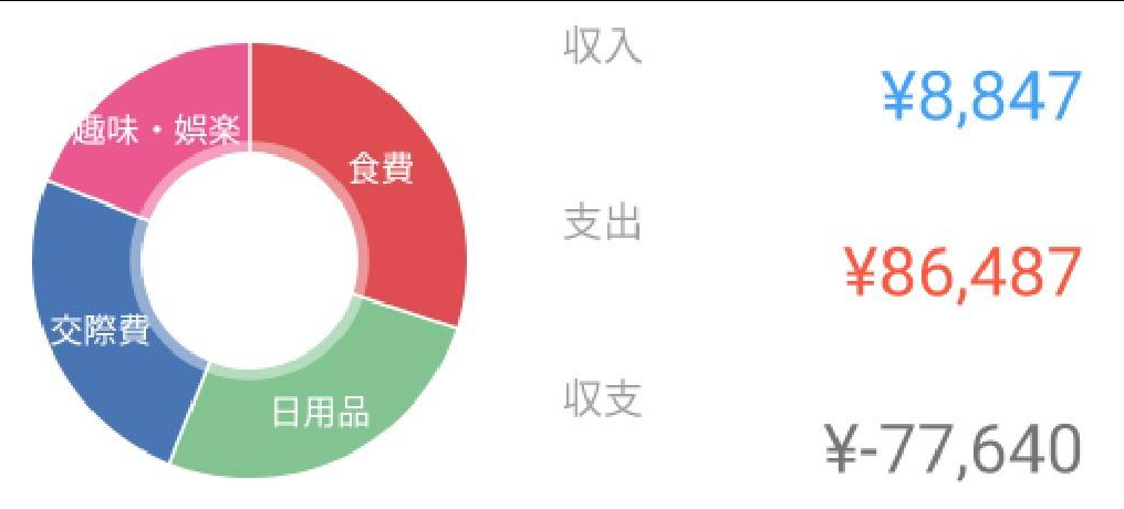 収入ー支出=-77,640